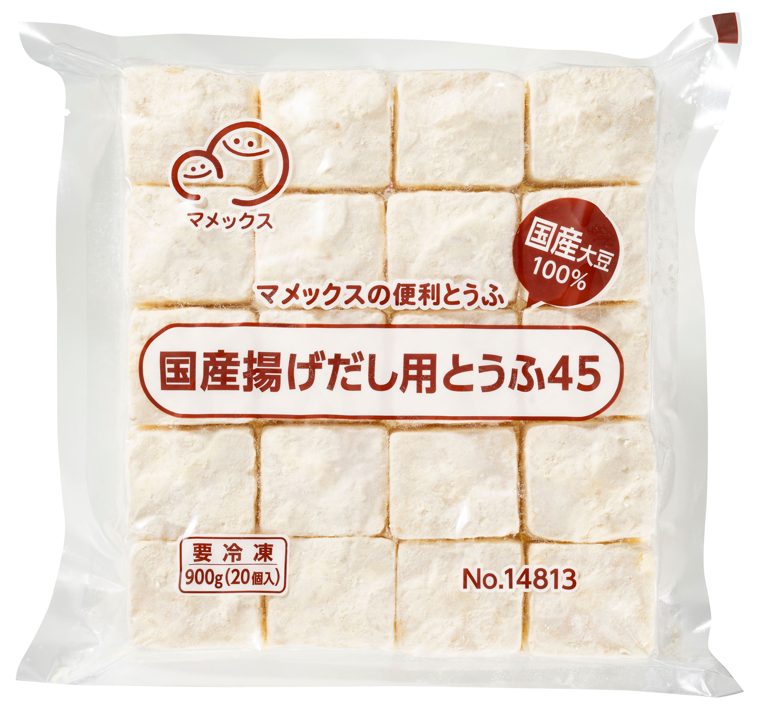 - 絹ごしとうふに粉をつけた、揚げだし専用の冷凍とうふです