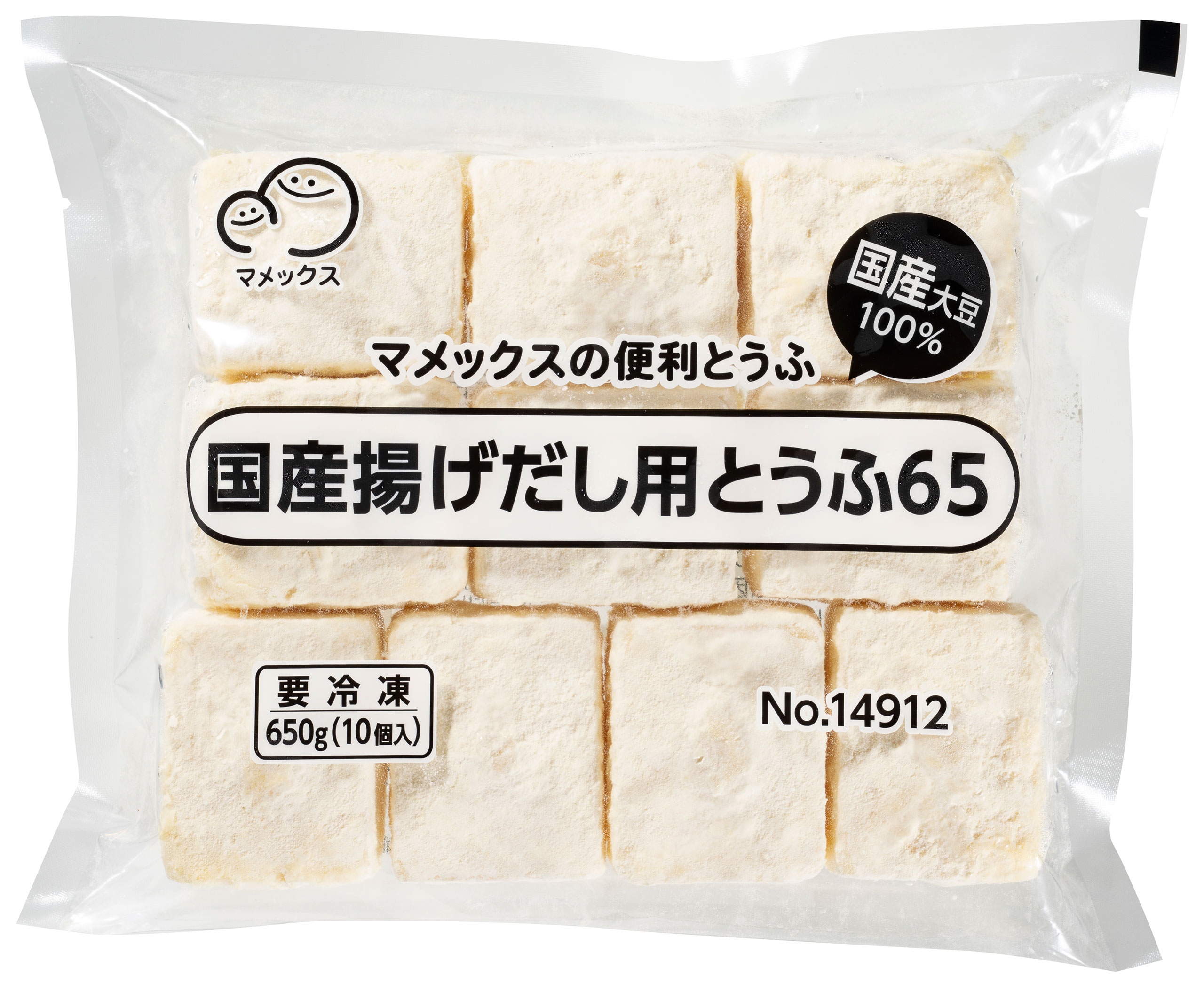 - 絹ごしとうふに粉をつけた、揚げだし専用の冷凍とうふです